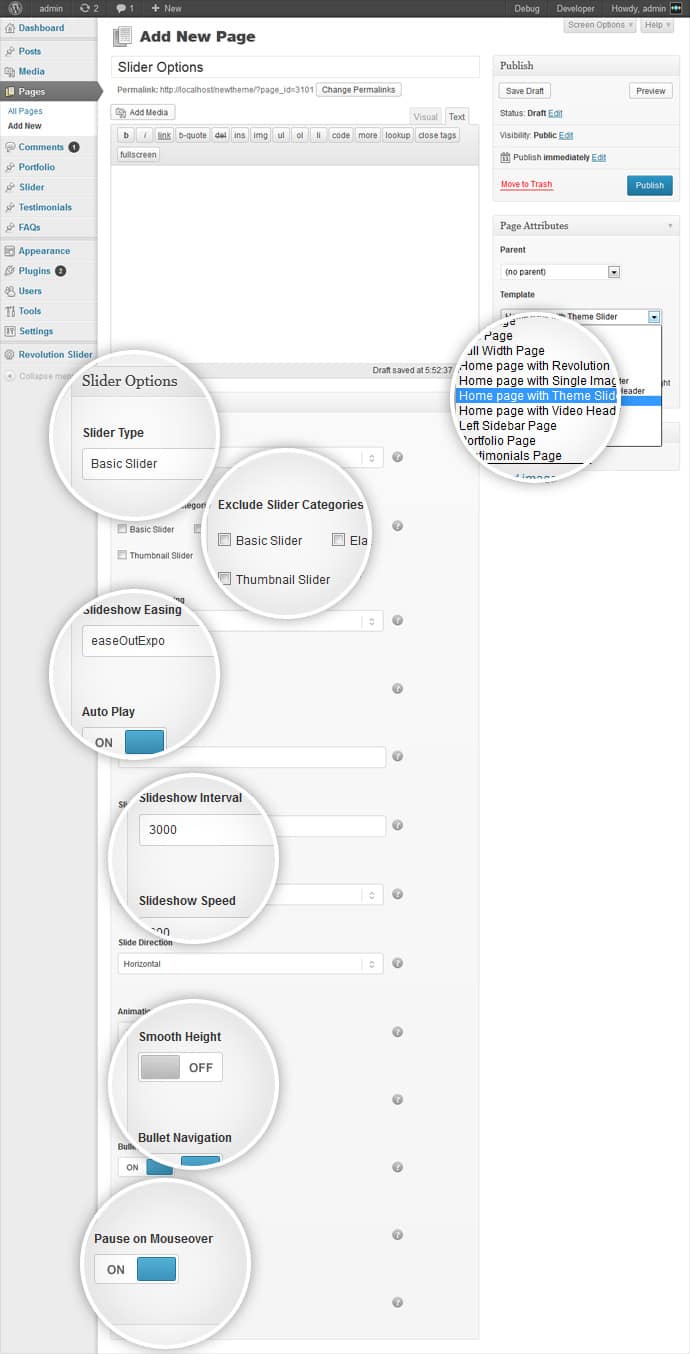 UltraWebStudio theme has powerful options for slider page. You can make unlimited slider pages with exclude slider category options. UltraWebStudio has four inbuilt slider for home page – Default slider, Icon slider, Thumbnail slider and Basic slider. Each slider has lots of options like disable/enable bullet navigation, arrow navigation, auto play, animation loop, smooth height, pause on hover. You can set slider easing with 30 easing effects from dropdown menu. You can set slideshow interval and slide show animation speed.